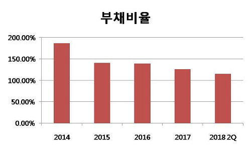 특히 올 상반기말 부채비율은 114.94%까지 낮아졌다. KT의 부채비율은 2014년 186.5%까지 치솟았지만 황창규 회장 취임 이후 재무구조 개선 작업에 착수한 성과가 나타나고 있다.
