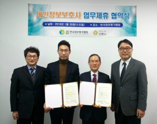 지난달 30일 한국정보평가협회 회의실에서 진행된 업무제휴 협약식에는 권오일 한국정보평가협회장, 박준규 민행24 대표 외 관계자들이 참석해 개인정보보호사 자격의 교육 및 홍보 방안에 대해 논의했다.