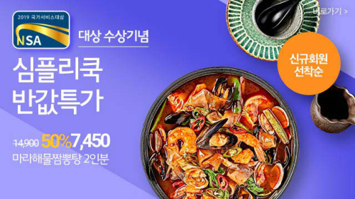 먼저 오는 26~27일 양일간 네이버에서 검색만 하면 할인과 경품 획득의 기회를 얻을 수 있다. 26일 12시부터 네이버에서 ‘GS프레시 심플리쿡’ 검색 시 GS프레시 신규고객 선착순 1000명에게 인기상품인 ‘마라해물짬뽕탕’, ‘부산식 냉채족발’ 등을 반값에 구매할 수 있는 할인 기획전을 진행한다.