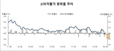 소비자물가 상승률은 작년에 12개월 연속 1%를 밑돌다 올해 1∼3월에는 1%대로 올라섰으나 신종 코로나바이러스 감염증(코로나19)의 영향으로 4월에 다시 0%대 초반으로 떨어진 바 있다.