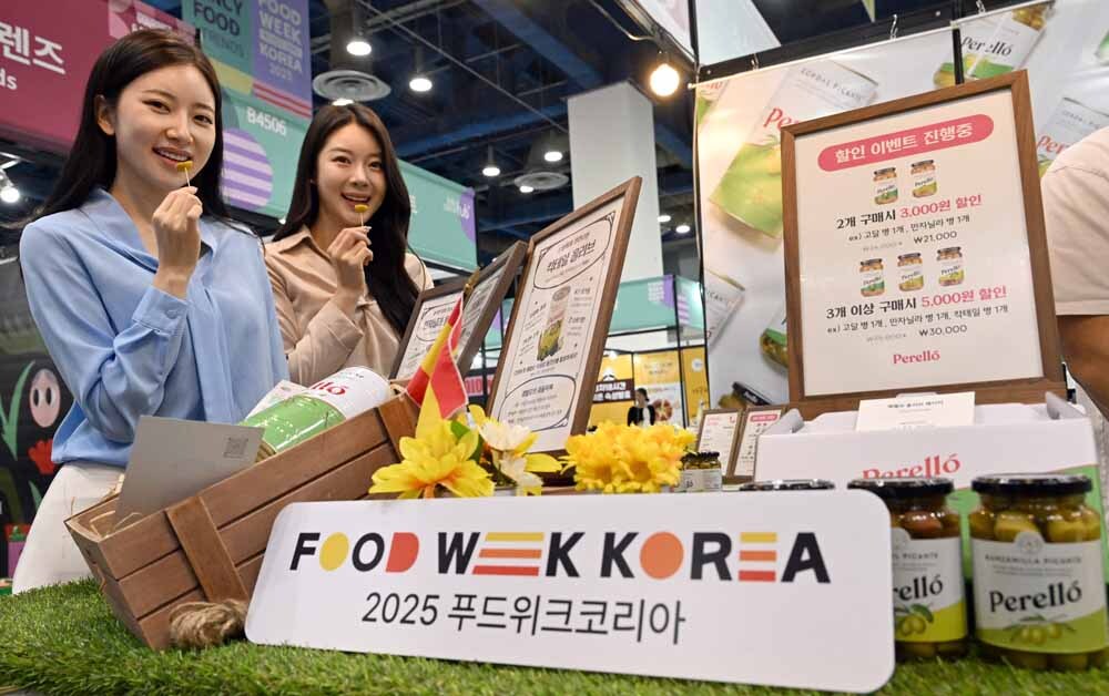 29일 서울 강남구 코엑스에서 열린 '2025 푸드위크 코리아'에서 모델들이 포즈를 취하고 있다.