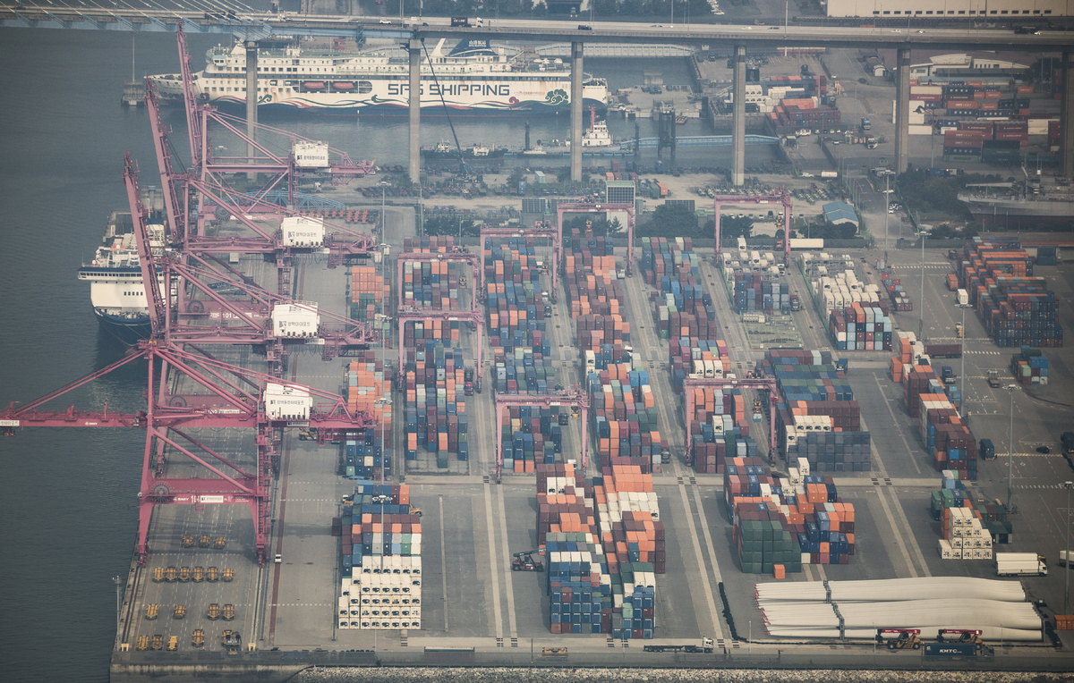 11월까지 올해 누적 수출이 6402억 달러로 집계되면서 역대 최대 실적을 3년 만에 경신했고 올 수출 목표치인 7000억 달러 달성도 청신호가 켜졌다. 경기 평택항에 수출용 컨테이너들이 쌓여 있다. 뉴시스