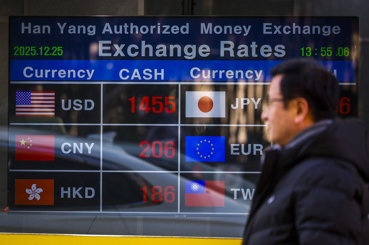 정부의 외환 수급대책 발표 이후 원·달러 환율이 하락한 가운데 25일 서울 중구 명동의 환전소 전광판에 환율 정보가 나타나 있다. 뉴시스