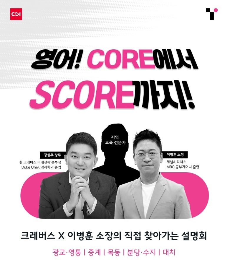 한편, 청담어학원 입시 설명회 ‘영어! CORE에서 SCORE까지’는 크레버스 공식 홈페이지에서 신청할 수 있다.