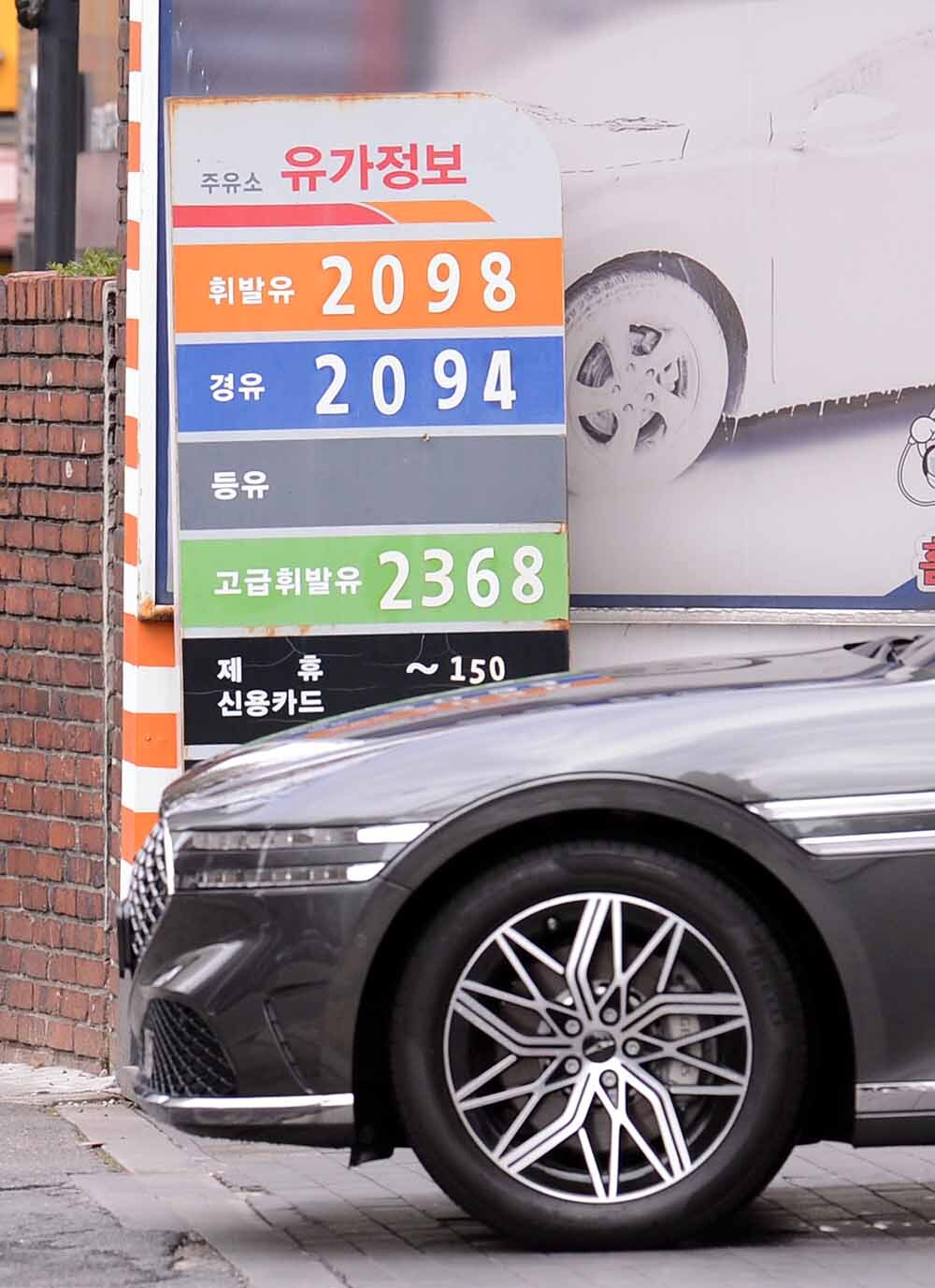 서울 주유소 평균 휘발유 가격이 리터당 2000원에 육박하고 있는 31일 서울의 한 주유소의 유가정보판에 휘발유, 경유 가격이 표시되고 있다.