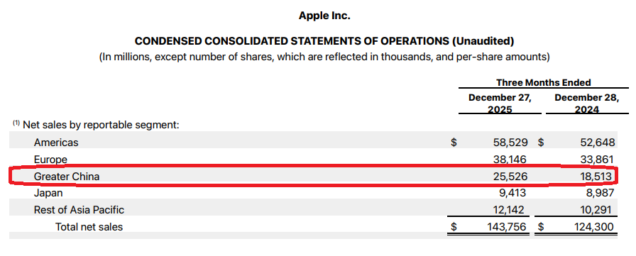중국은 미국에 이어 두 번째로 큰 시장이기도 하다. 2026 회계연도 1분기 애플의 매출은 전년 동기 대비 16% 늘어났는데, 같은 기간 중국을 비롯해 홍콩, 대만을 포함한 중화권 매출은 38%나 급증한 255억 달러를 기록했다. 애플은 미·중 갈등 국면, 화웨이 등 현지 경쟁사들의 약진 등 악재를 딛고 중국 내 스마트폰 시장점유율 21.8%로 1위를 찍었다.