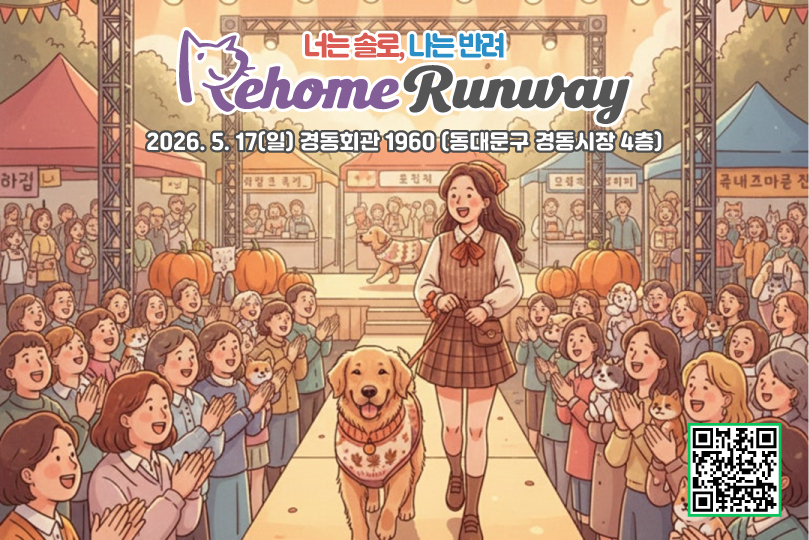 세계비즈앤스포츠월드와 도그어스플래닛이 유기동물 입양 활성화를 위해 슈퍼모델과 유기견이 함께 런웨이를 펼치는 ‘리홈 런웨이(Re Home Runway)’를 개최합니다. 이날 행사에서 반려견과 함께 런웨이 무대를 경험할 반려가족을 모집합니다. 참여를 원하시는 분은 QR코드를 확인해주세요.